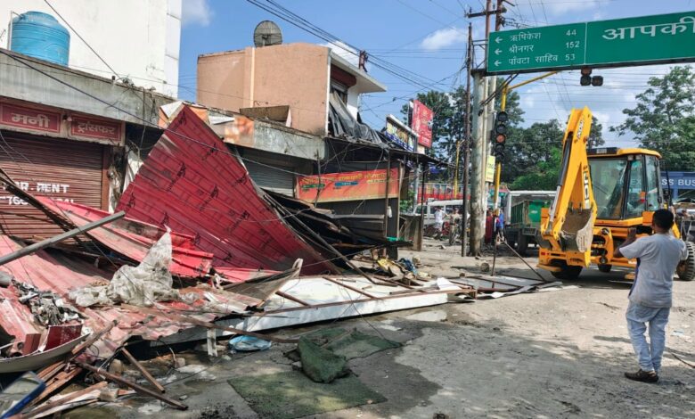 ट्रांसपोर्ट नगर में अतिक्रमण पर चला एमडीडीए और नगर निगम का संयुक्त बुलडोजर, दुकानों से हटाया गया अतिक्रमण