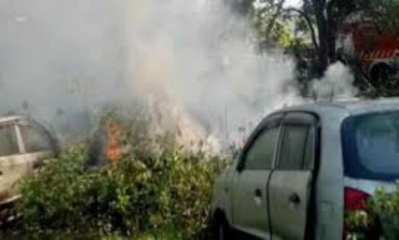 पुलिस चौकी कैंपस में खड़े पुराने वाहनों में अचानक लगी आग