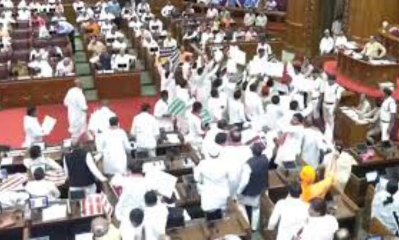सपा विधायकों ने बिजली, बाढ़ और कानून व्यवस्था के मुद्दों को लेकर सदन में किया विरोध प्रदर्शन